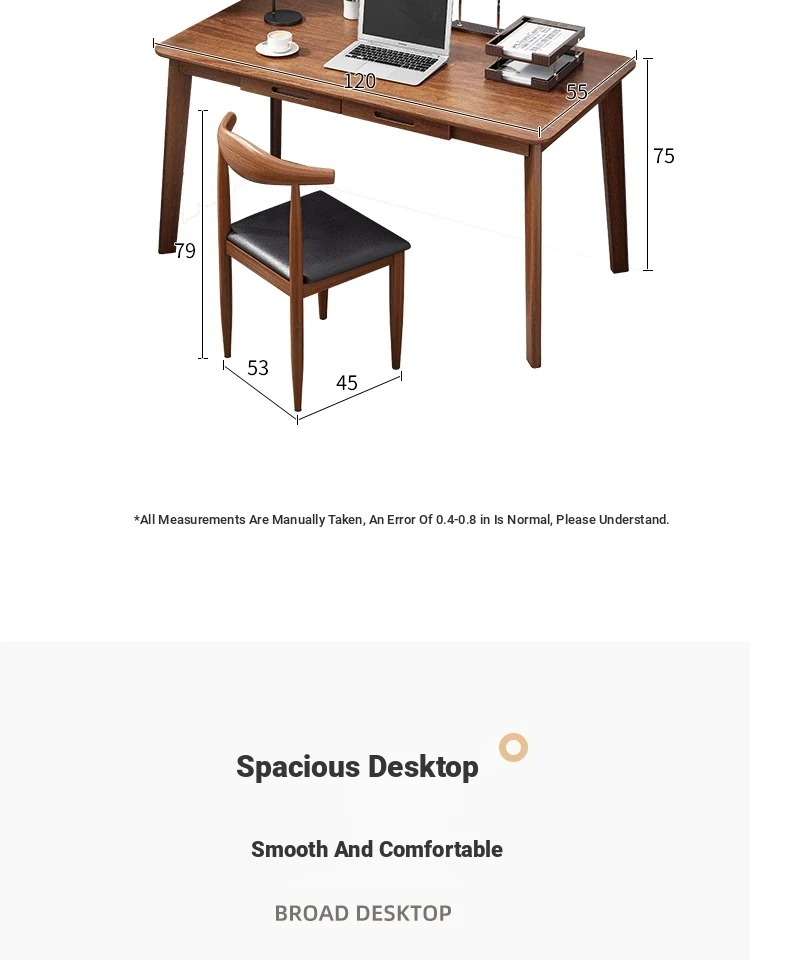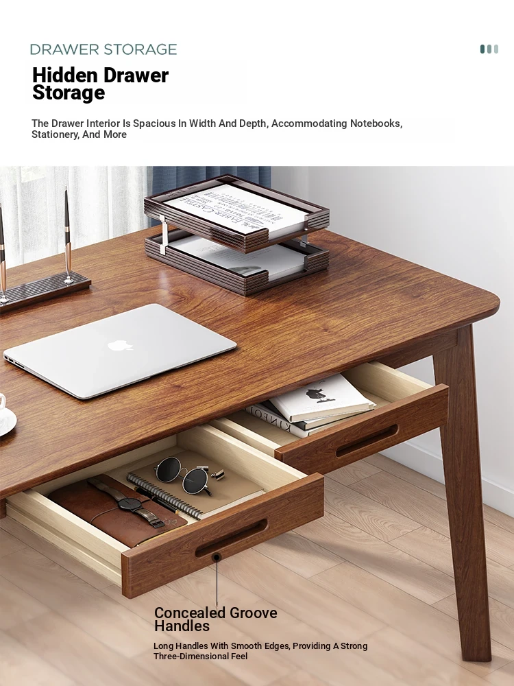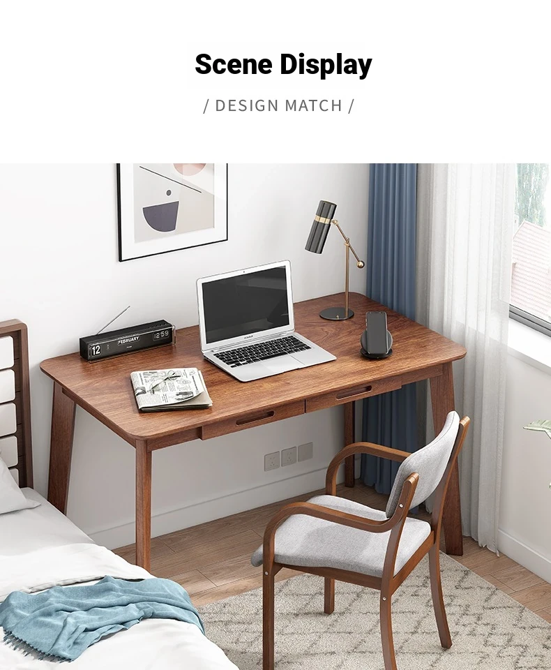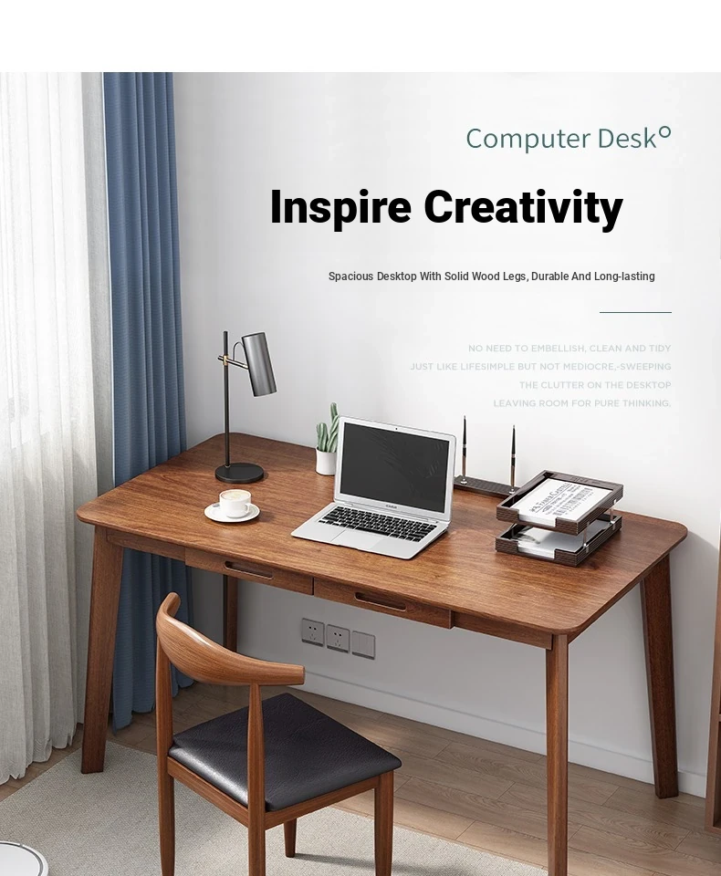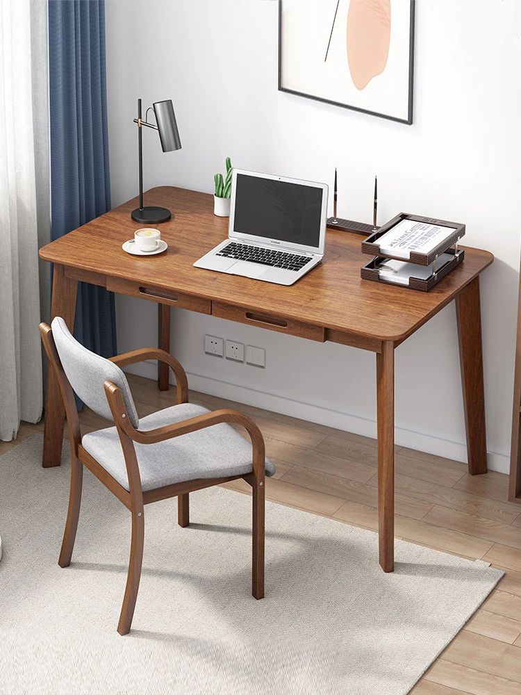 Compact Solid Wood Desk for Small Spaces - Minimalist Black Walnut Computer Writing Table for Home Use, Perfect for Bedrooms and Study Areas.