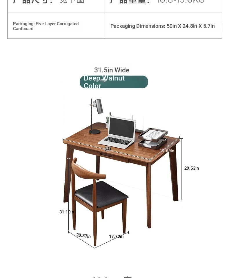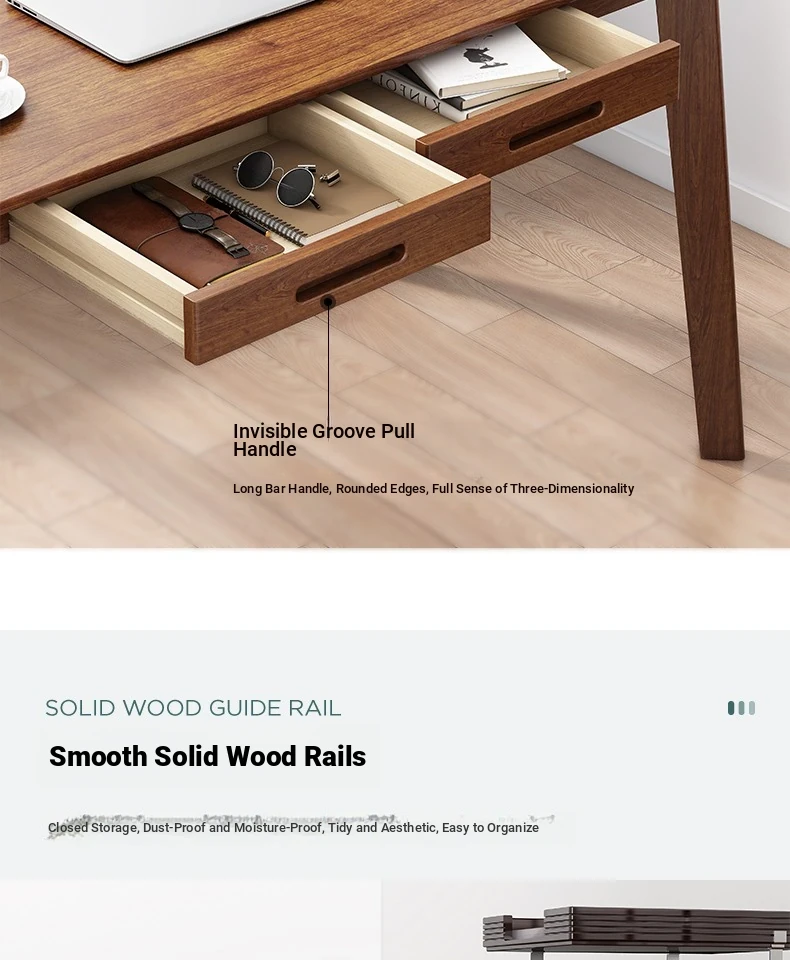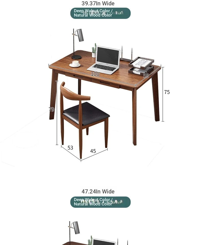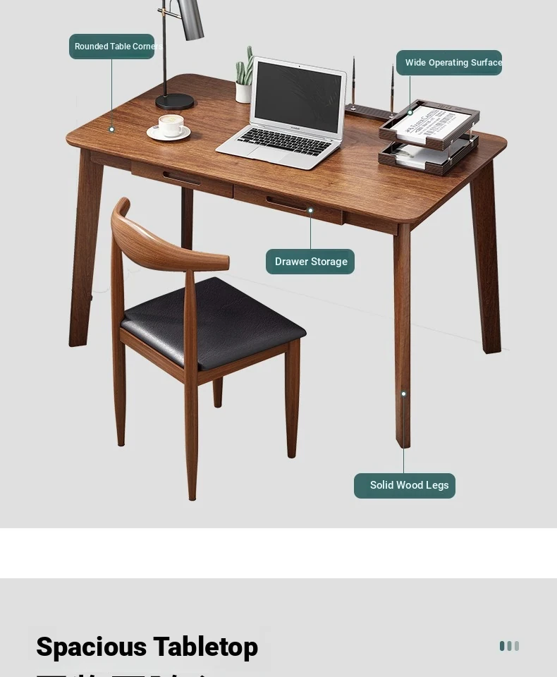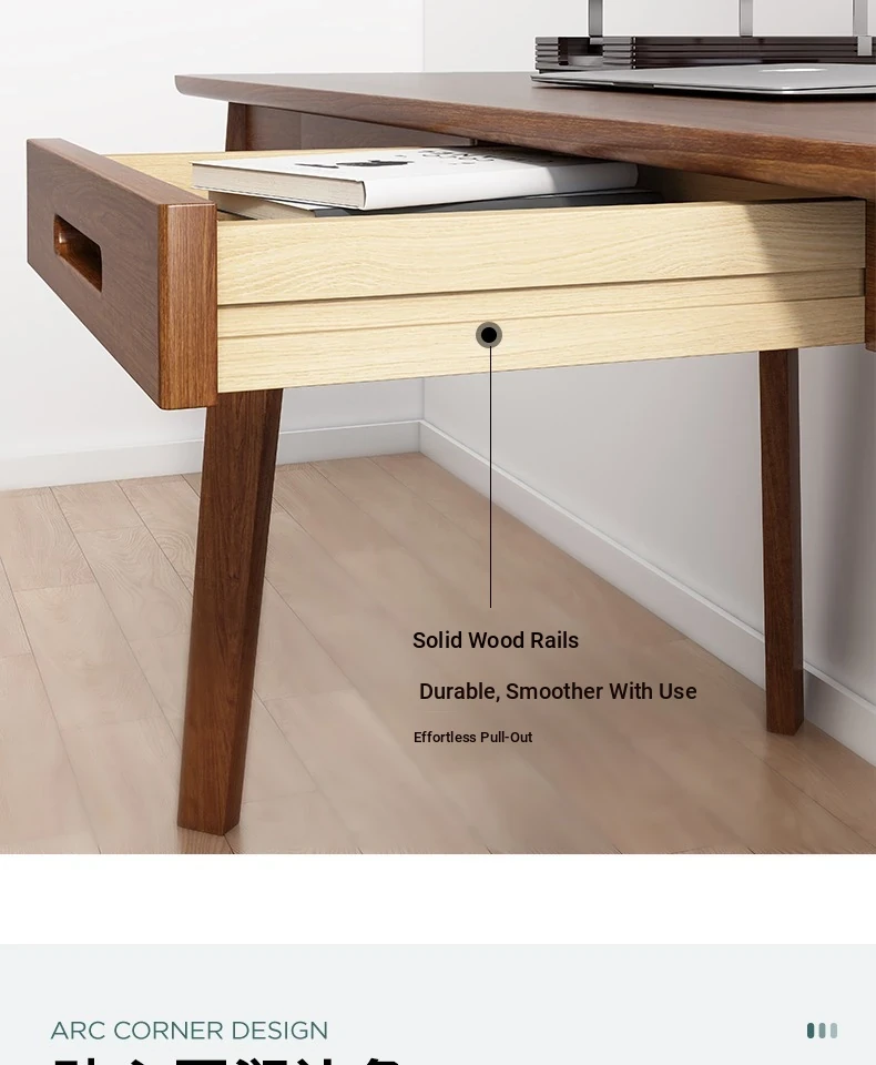Compact Solid Wood Desk for Small Spaces - Minimalist Black Walnut Computer Writing Table for Home Use, Perfect for Bedrooms and Study Areas.