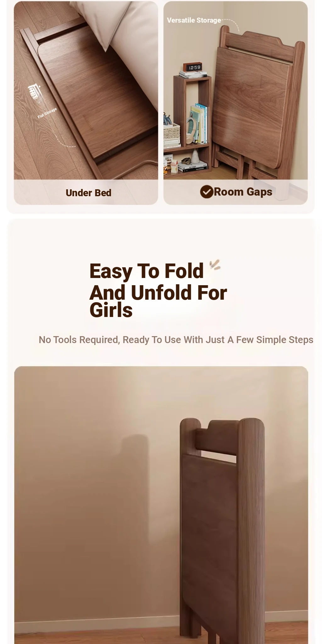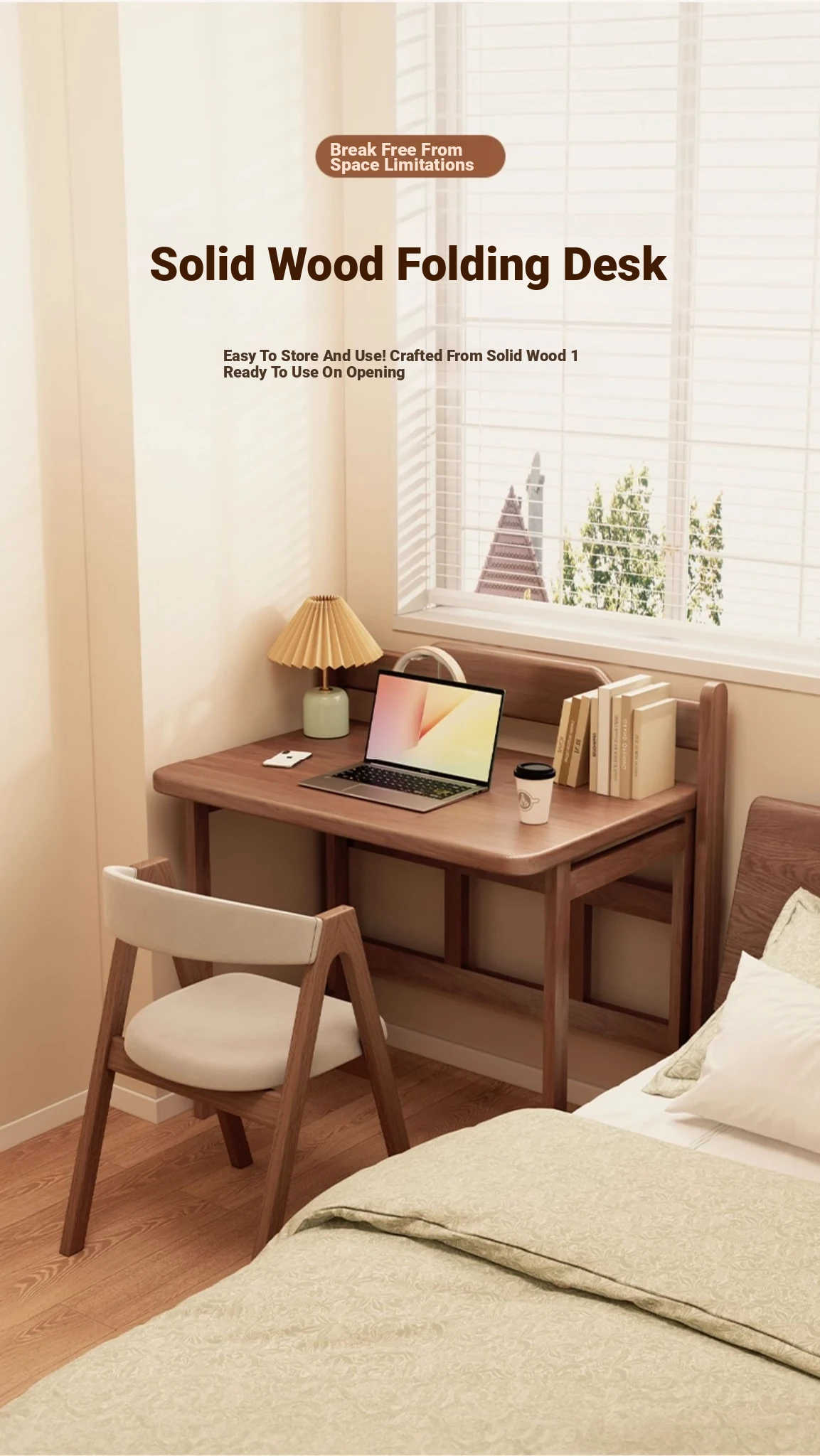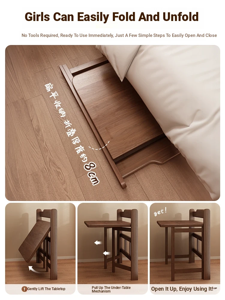 Foldable Solid Wood Bedside Table – Versatile Home Office Desk for Small Spaces, Perfect for Bedrooms, Study, or as a Cozy Laptop Table by the Bed