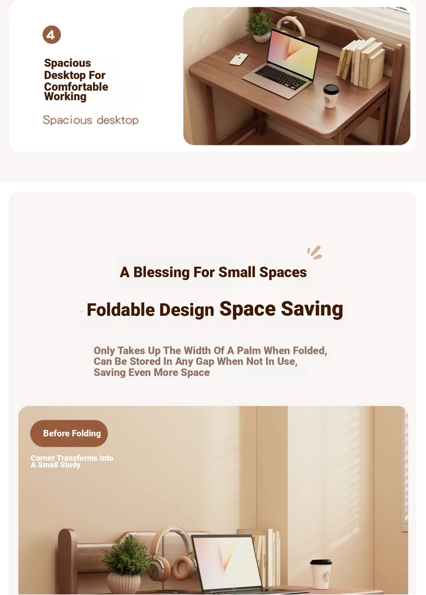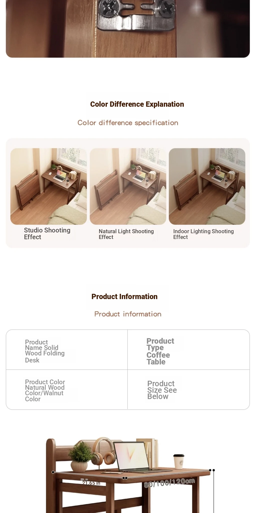 [All Solid Wood] Folding Desk-Walnut Color 31.50in