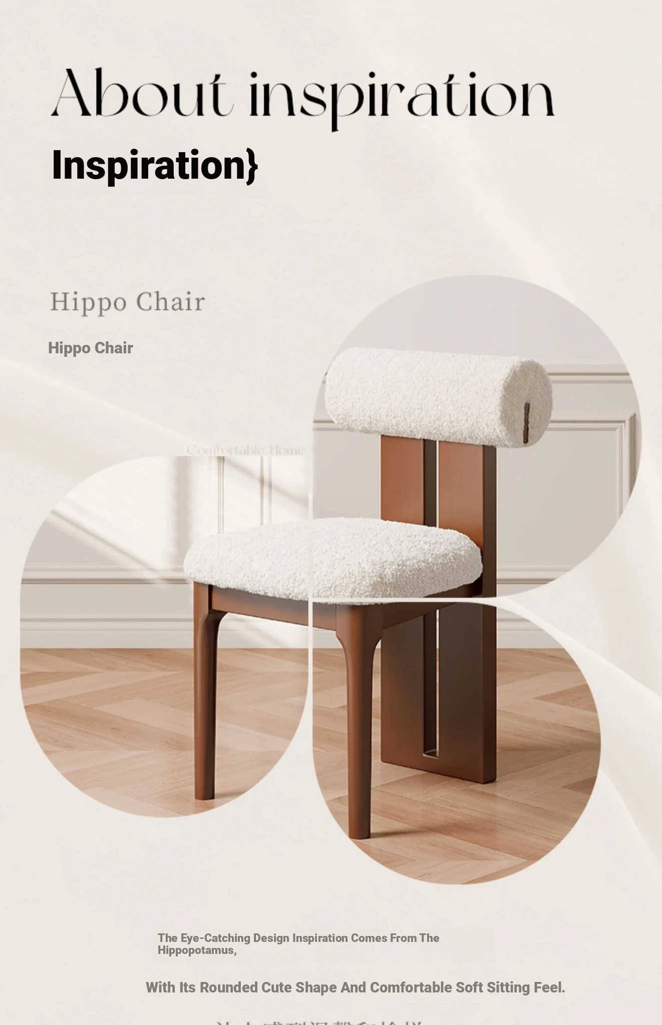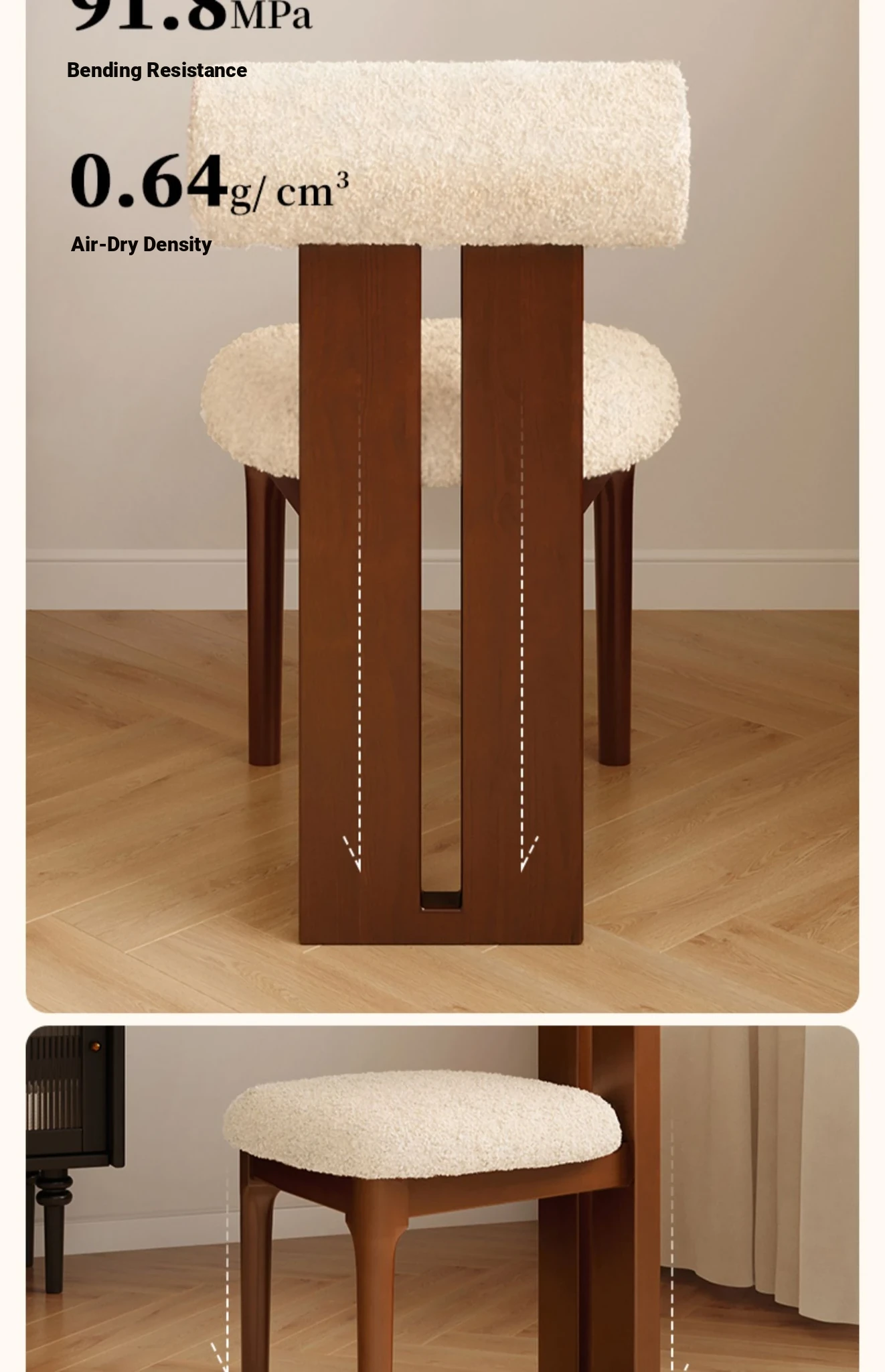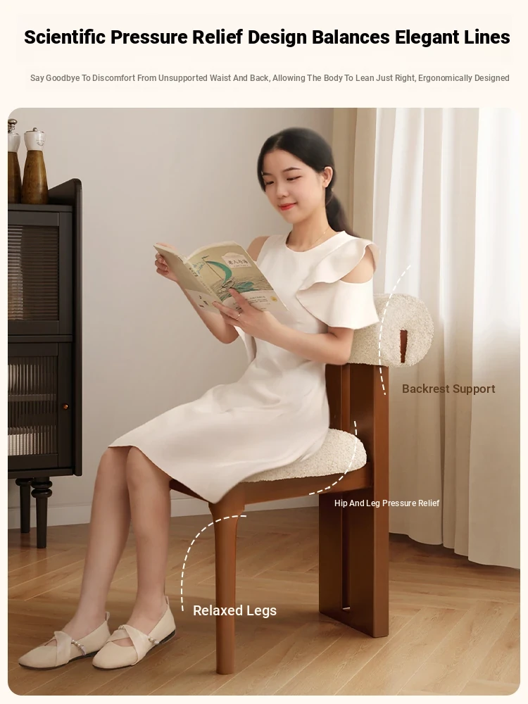 Walnut-Colored Frame with a White Lambswool Seat [Fully Assembled and Shipped Via Deppon Express, Delivered to Your Door]