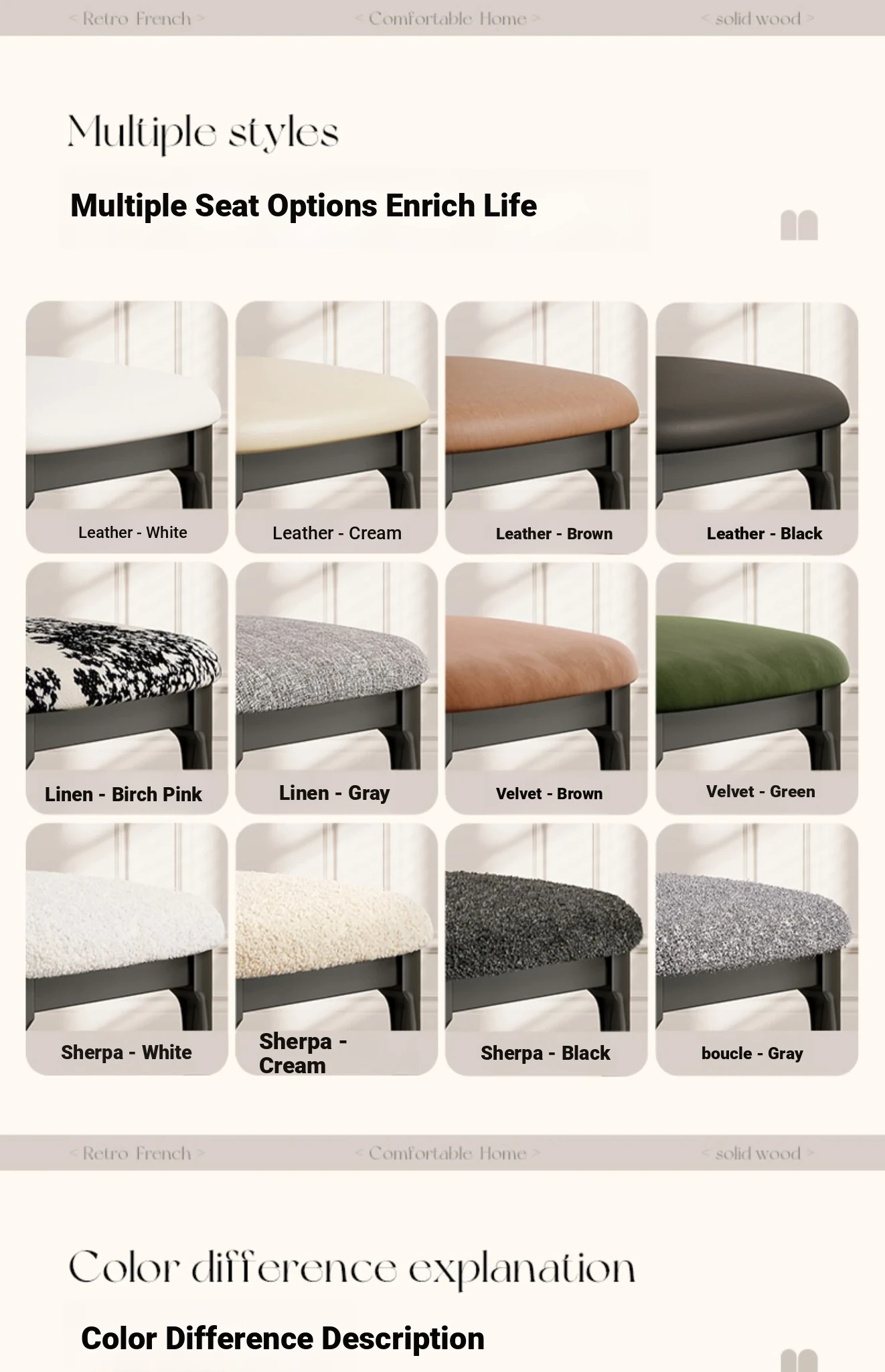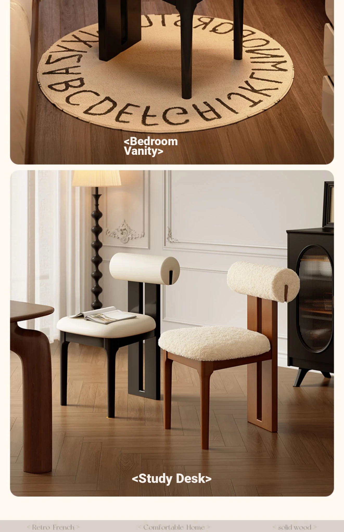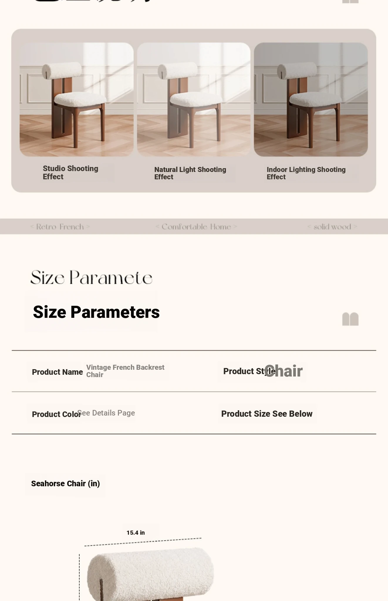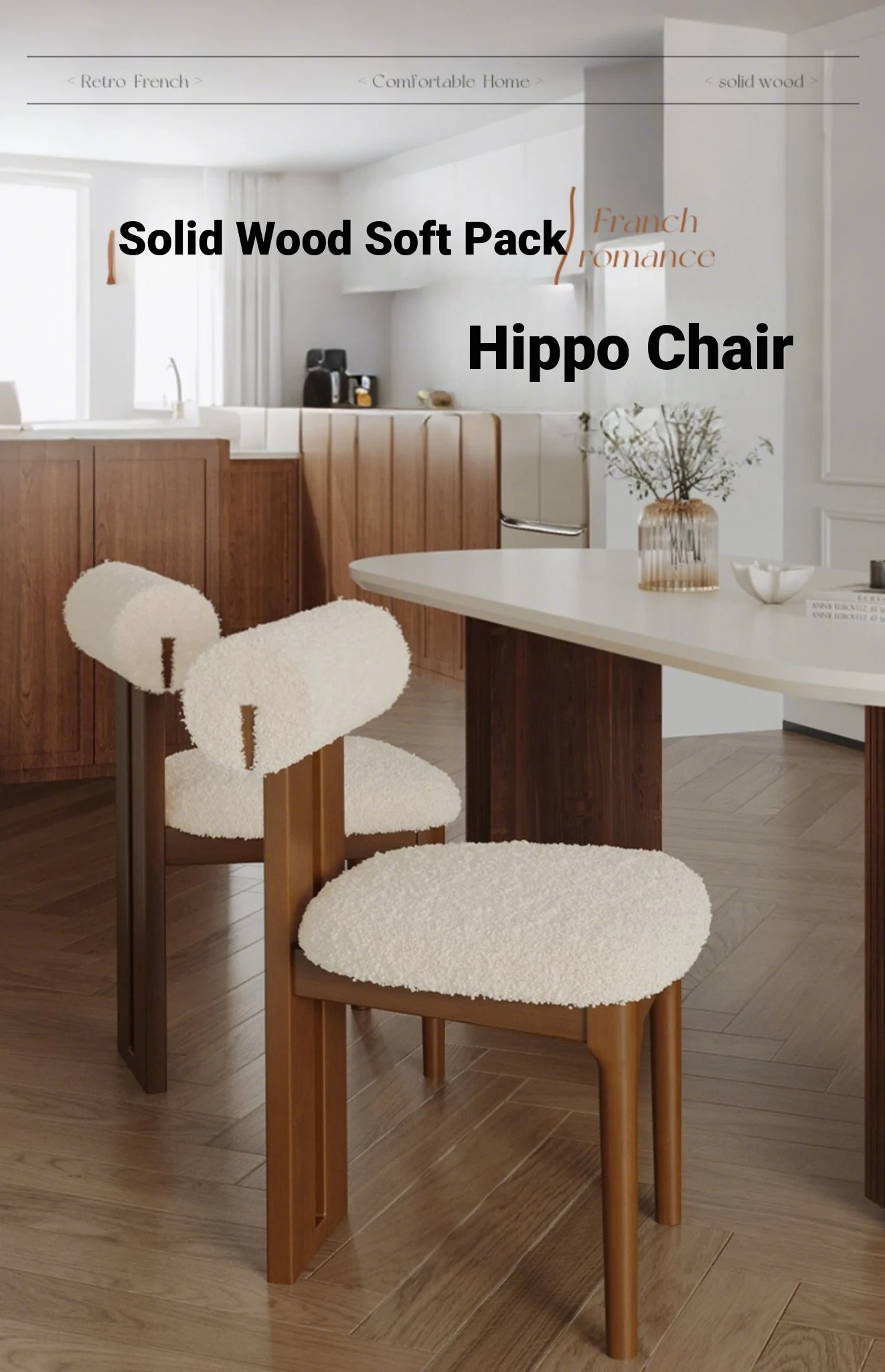 Vintage French Solid Wood Dining Chair Set - Stylish Home Dining Chairs & Makeup Stool - 2025 New Retro Hippo Chair for Elegant Spaces