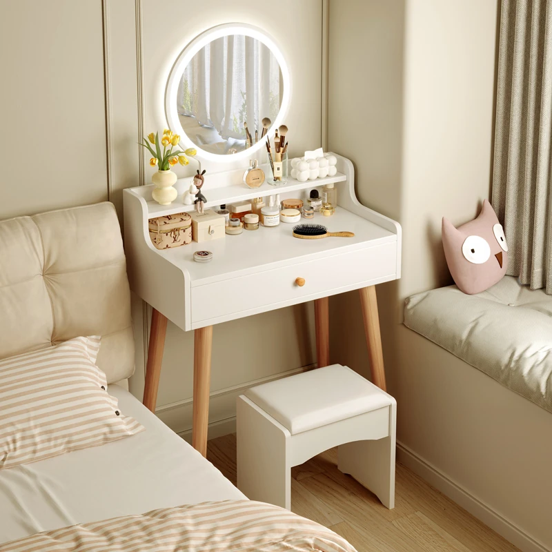 Compact Modern Makeup Vanity Table for Small Bedrooms - Sleek Design, Perfect for Corners, Mini Size 50x60cm, Ideal for Your Main Bedroom