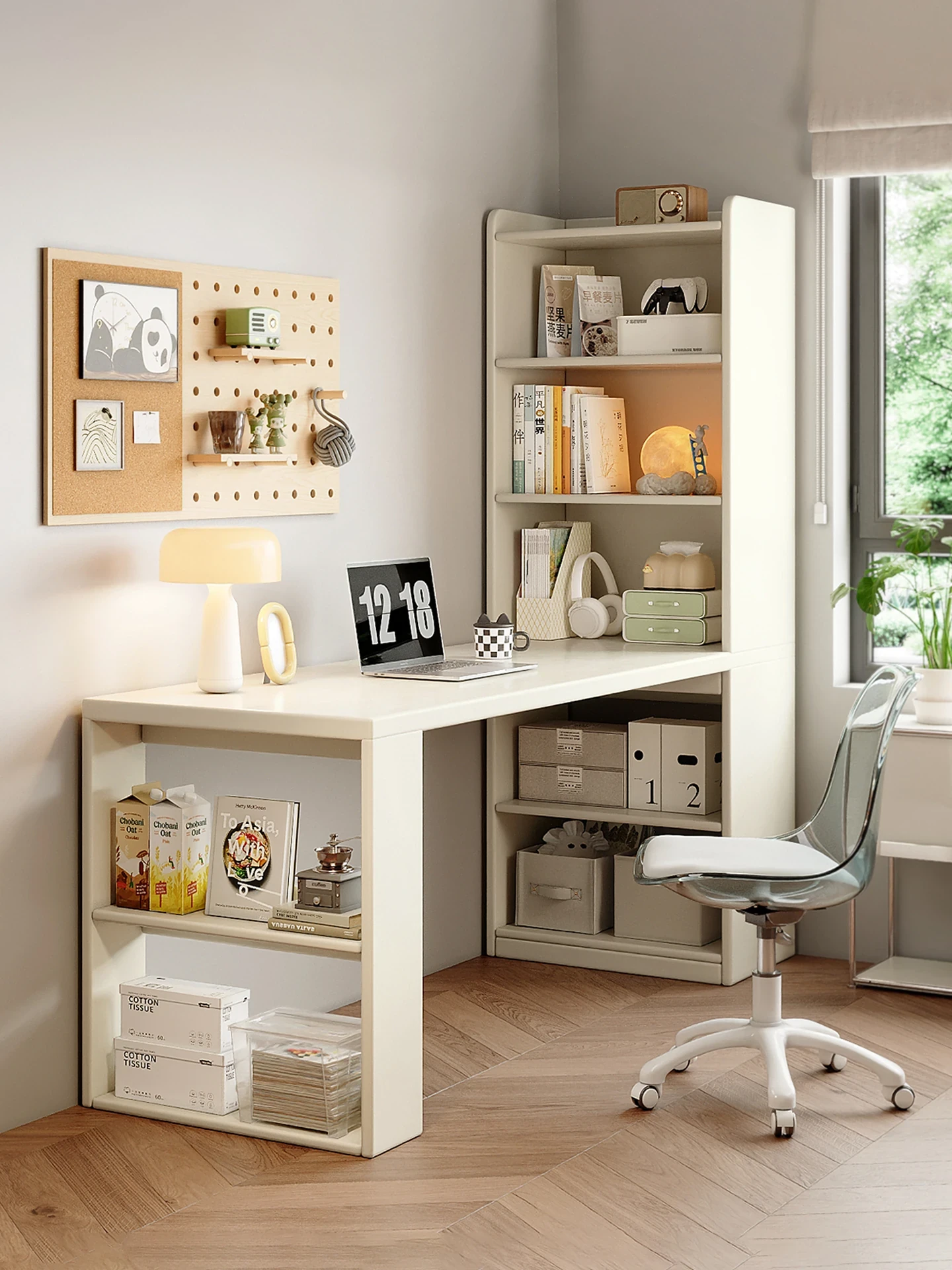 L-Shaped Corner Desk with Bookshelf - Stylish Makeup and Computer Desk for Girls' Bedrooms, Space-Saving Wall-Mounted Design, Perfect for Home Office Use