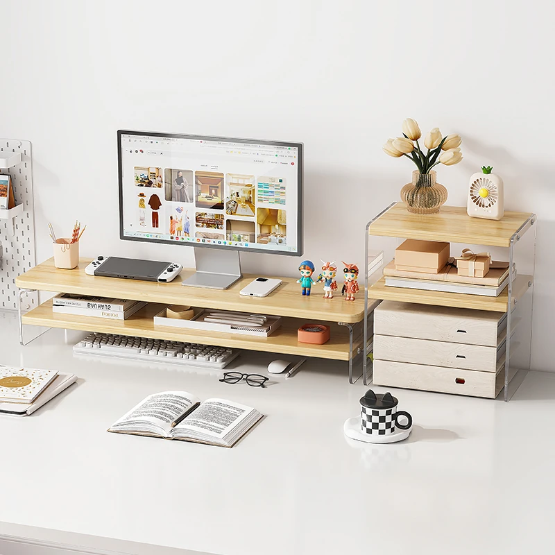 Acrylic Monitor Stand Riser - Desktop Organizer for PC, Office Desk Storage Solution, Ideal for Workspace Transformation and Efficient Space Management
