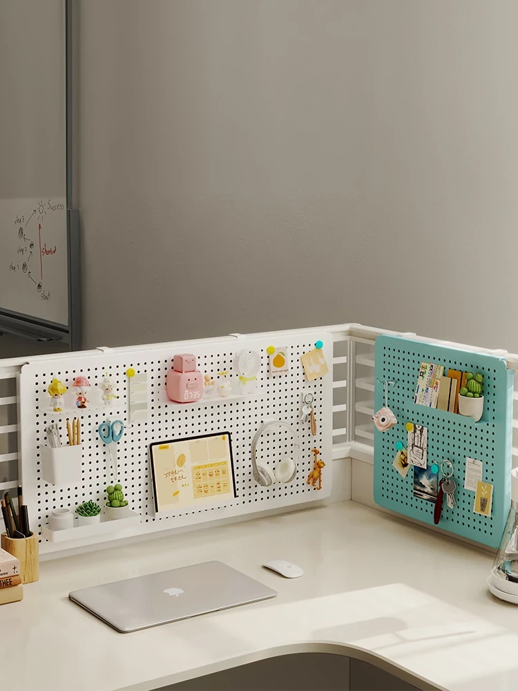 Wall-Mounted Pegboard Organizer for Desk - No Drilling Required! Stylish Office Storage Solution for Your Workspace - Keep Your Desk Tidy with This Functional Partition and Shelf System.
