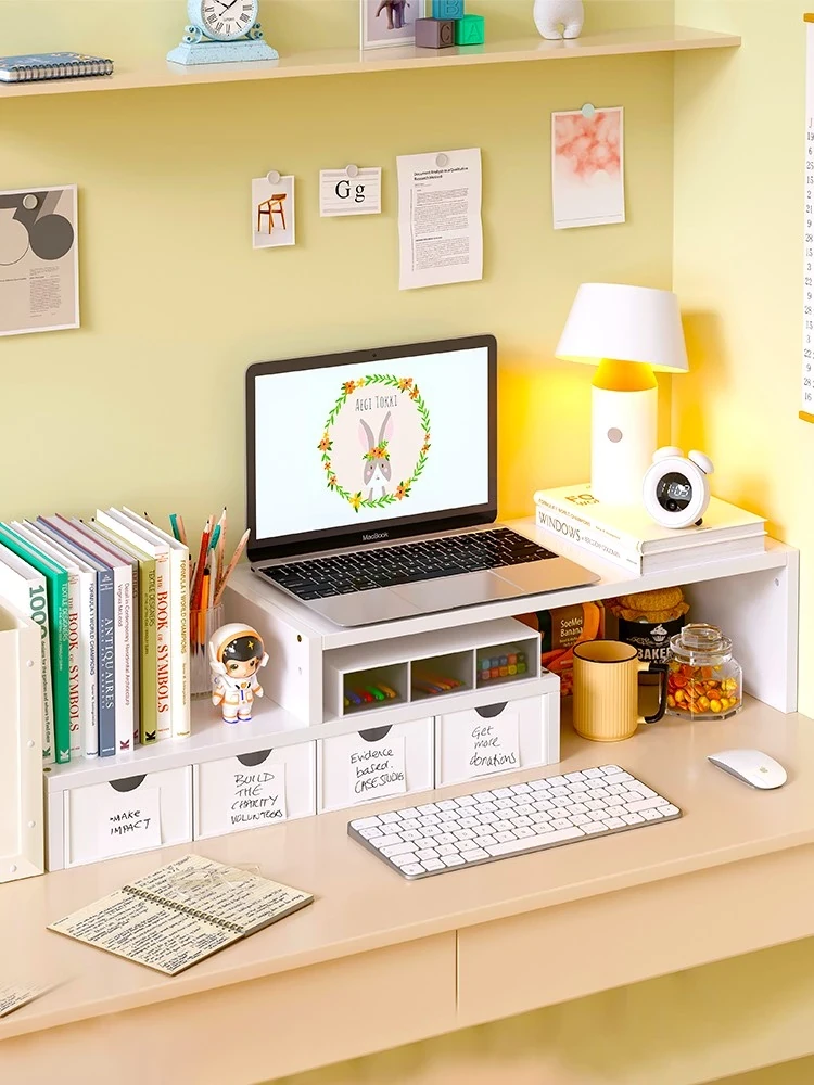 Desktop Storage Rack for Writing Desk - Space-Saving Organizer for Home and Dorm Use, Monitor and Laptop Stand for Improved Ergonomics and Productivity