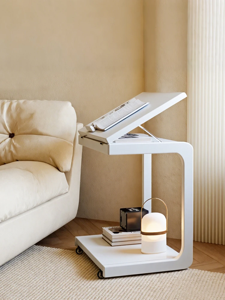 Creamy Wooden Movable Sofa Side Table - French Chic Luxury Design for Small Living Rooms, Perfect for Home Use