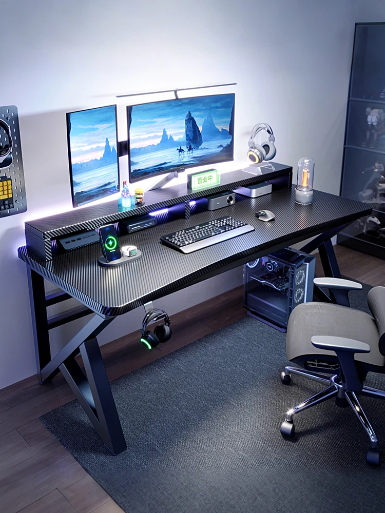 Gaming Desk with Carbon Fiber Finish - Stylish & Functional Home Office Desk, Perfect for Writing & Gaming in Your Bedroom or Workspace