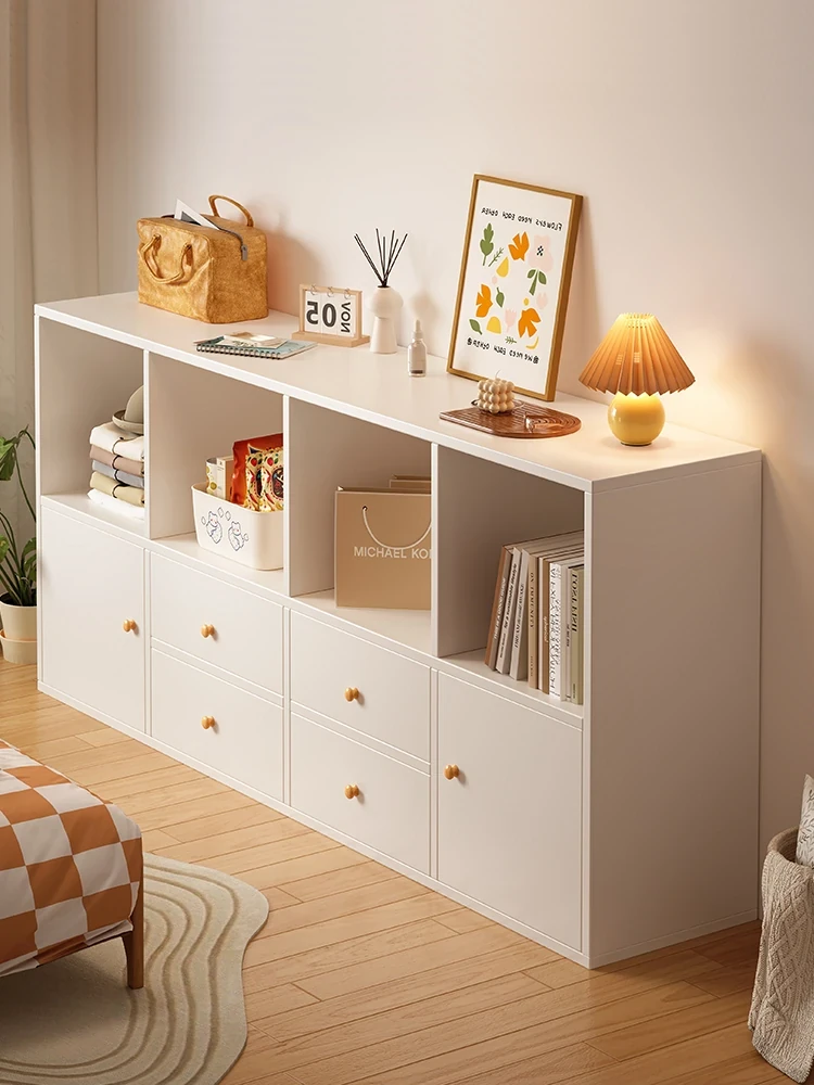 White Solid Wood Grid Cabinet - Creamy Style Low Bookshelf for Living Room Decoration, Versatile Storage Cabinet, Freely Combinable Bookshelf
