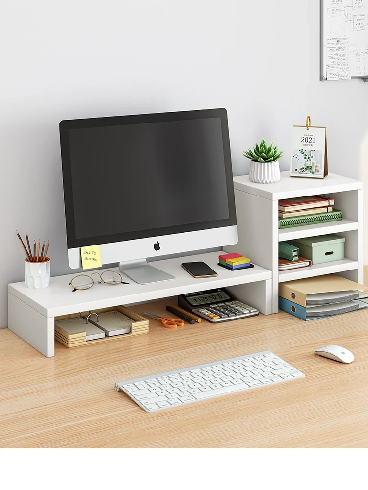 Height-Adjustable Desktop Computer Stand - Office Organizer for Monitors and Laptops, Elevate Your Workspace with This Stylish Storage Rack