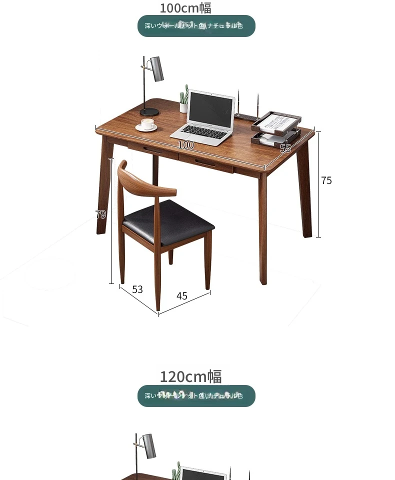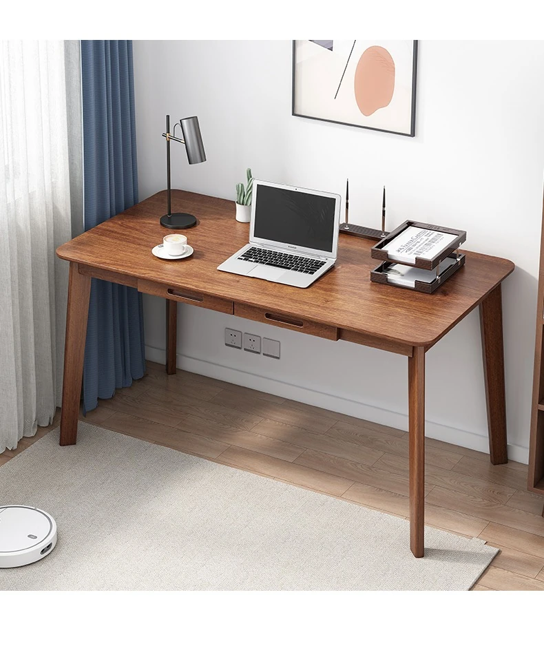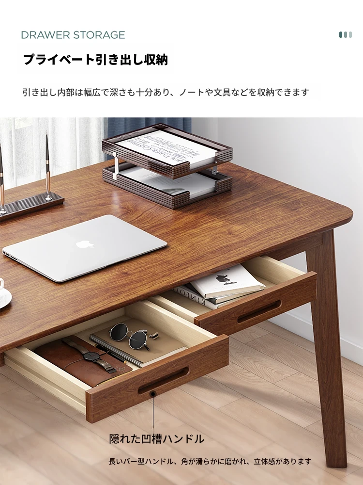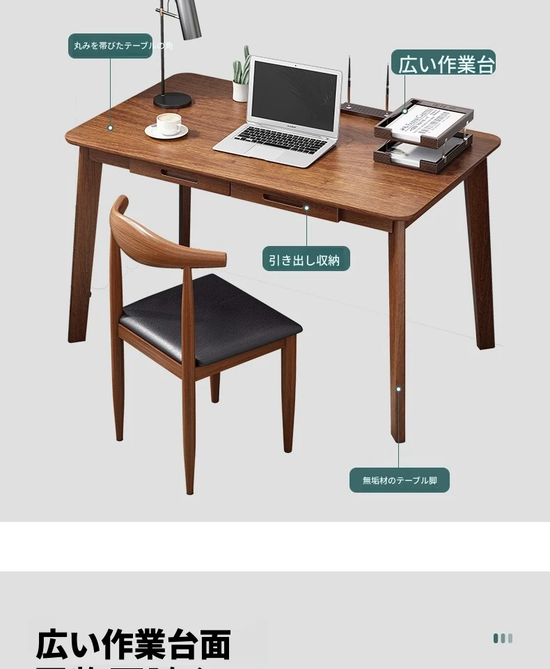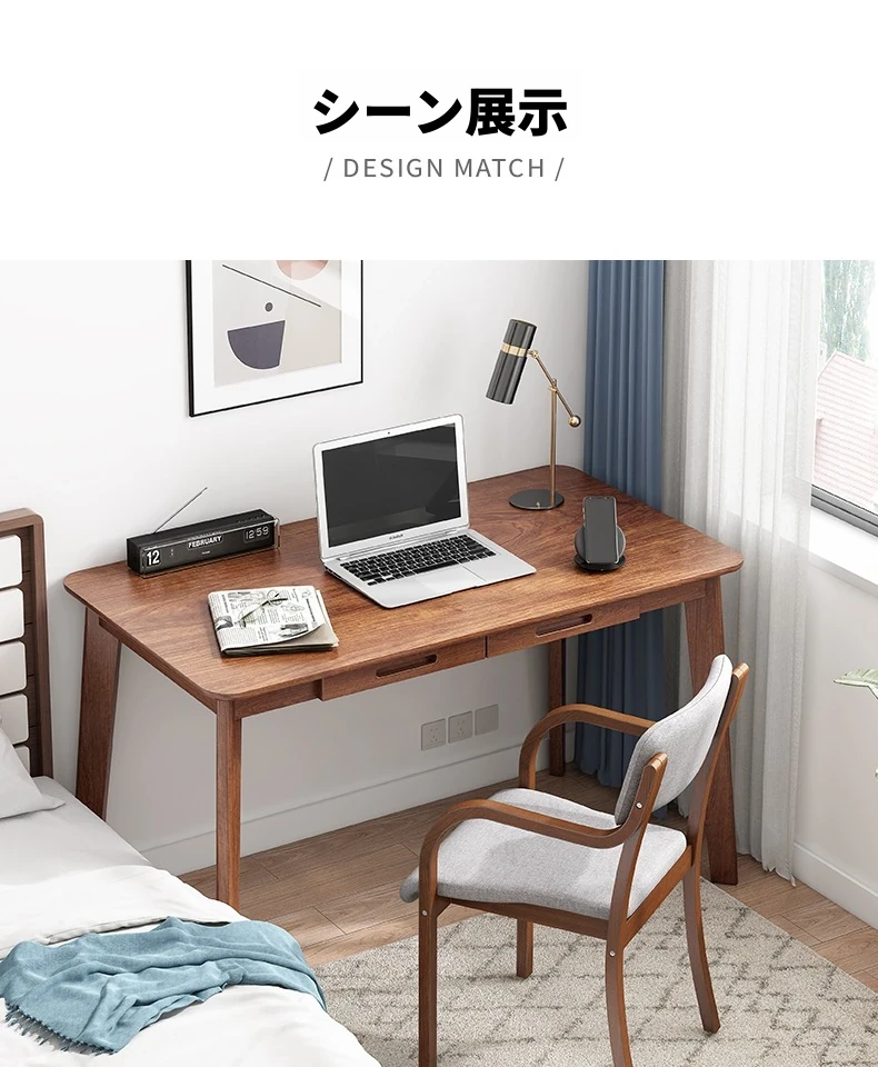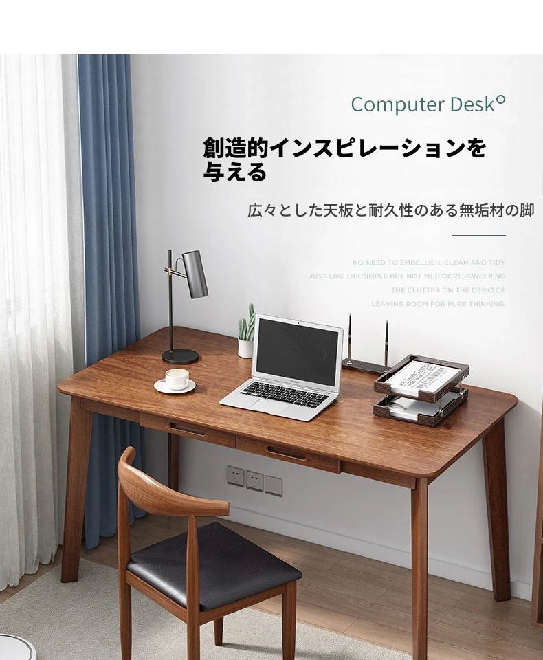 シンプルでスタイリッシュな無垢材のデスク - 小型住宅にぴったりなブラックウォールナット製の書斎用デスク。快適な作業空間を提供する、使いやすいコンパクトデザインのライティングテーブル。