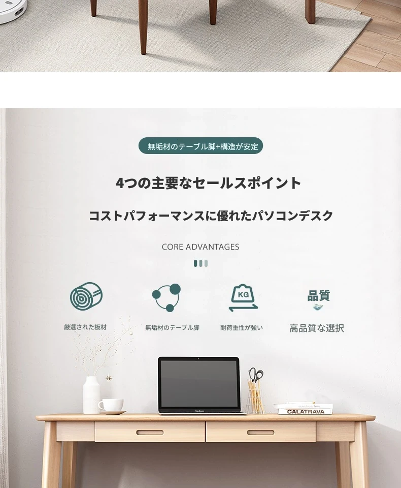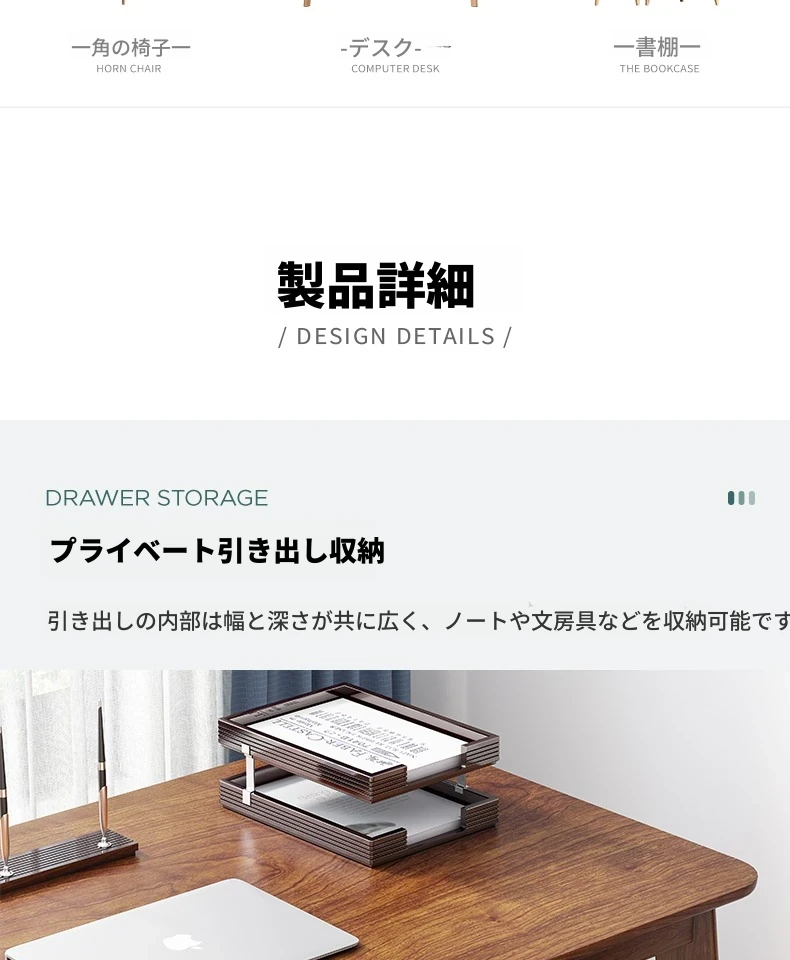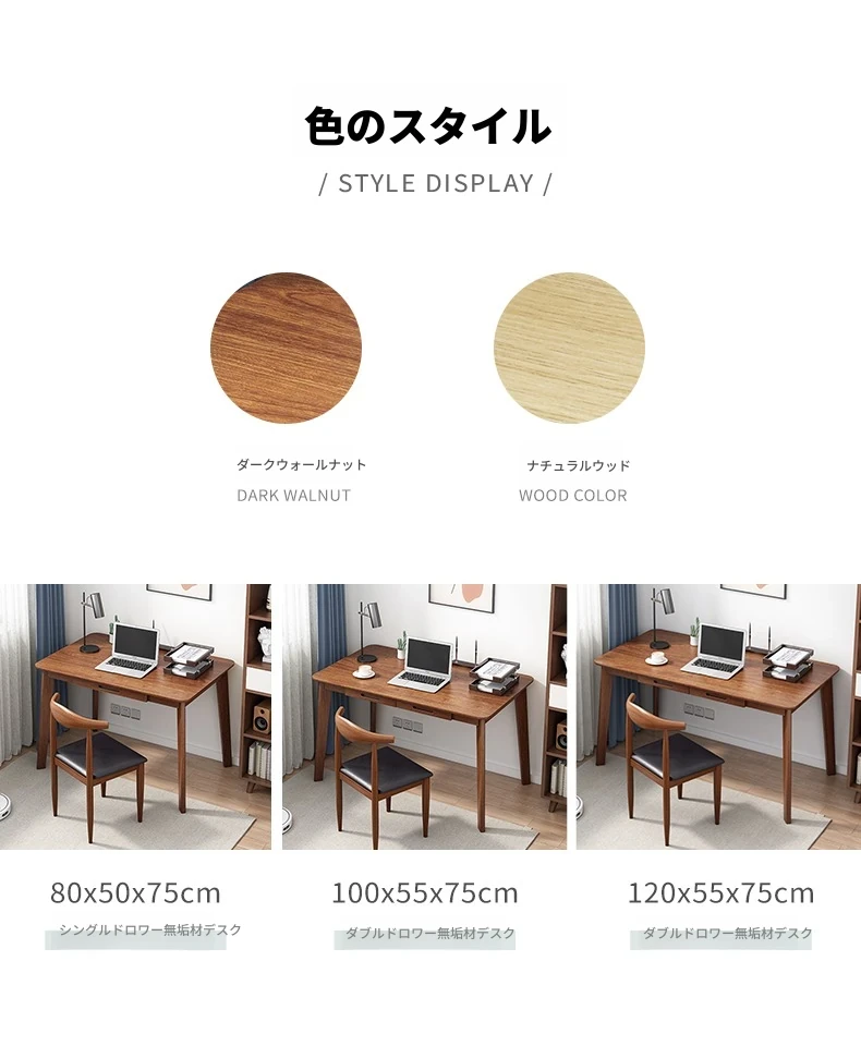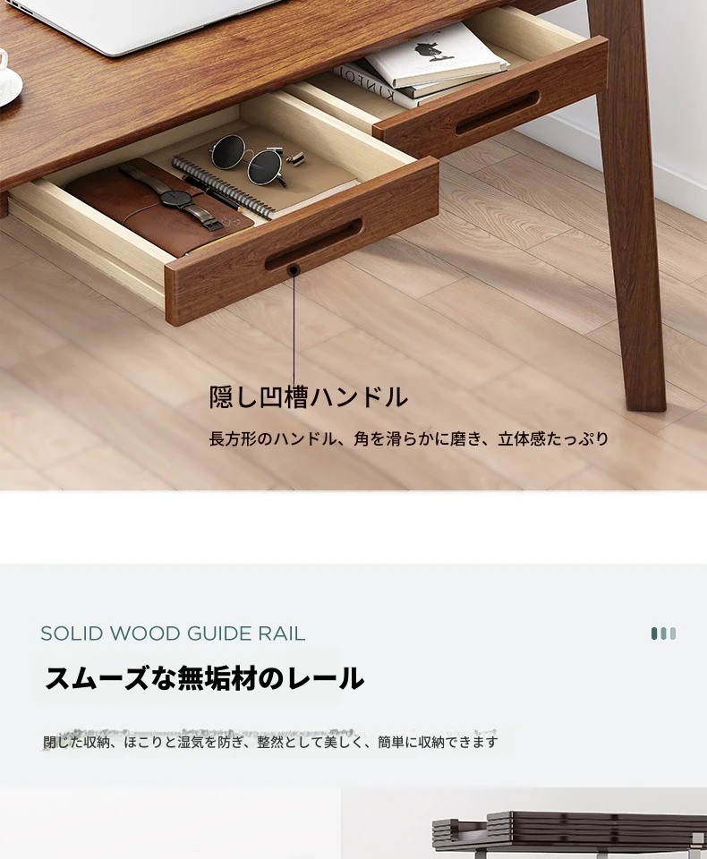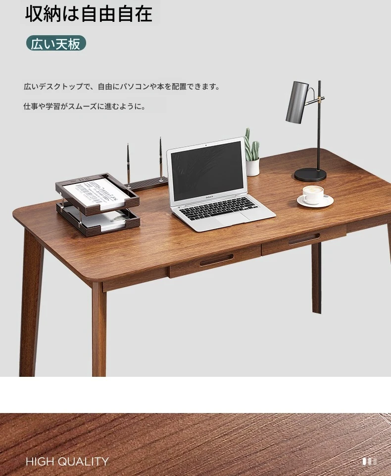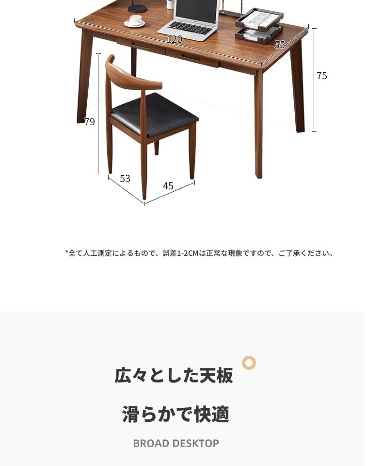 シンプルでスタイリッシュな無垢材のデスク - 小型住宅にぴったりなブラックウォールナット製の書斎用デスク。快適な作業空間を提供する、使いやすいコンパクトデザインのライティングテーブル。