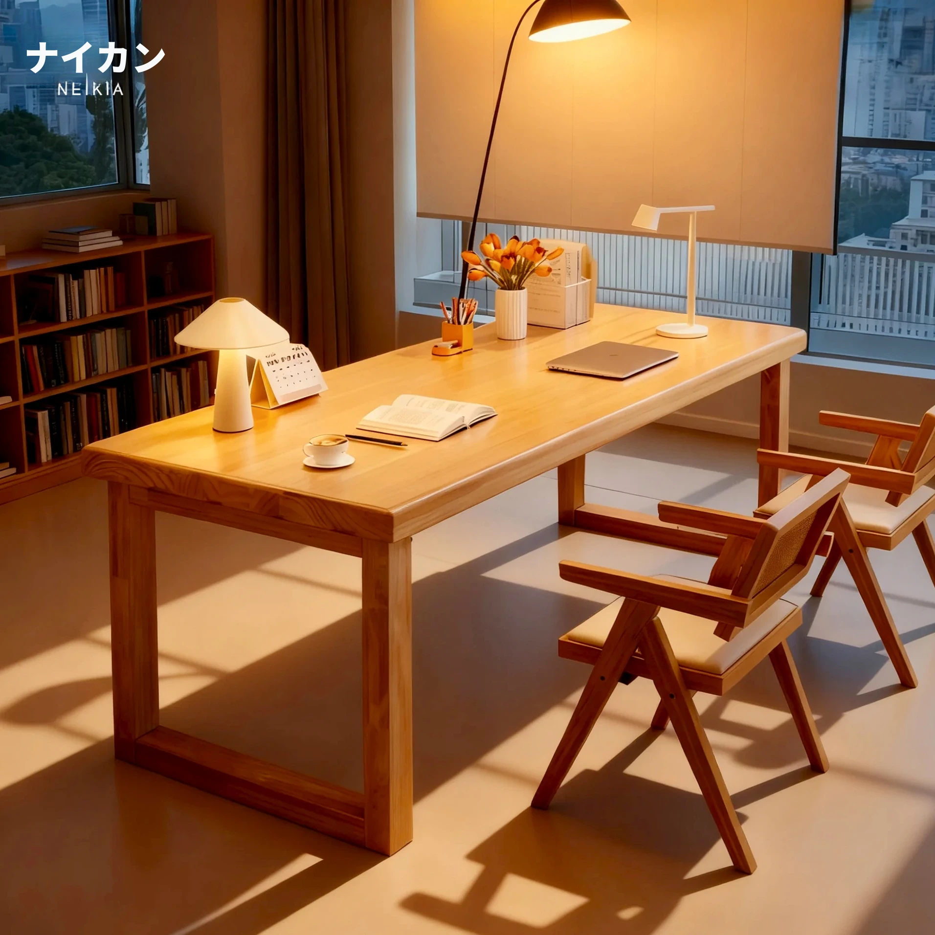 高品質の無垢材製パソコンデスク|学生向け・長方形のオフィスデスク|寝室にも最適な家庭用ゲーミングデスク|シンプルで使いやすいワークテーブル!