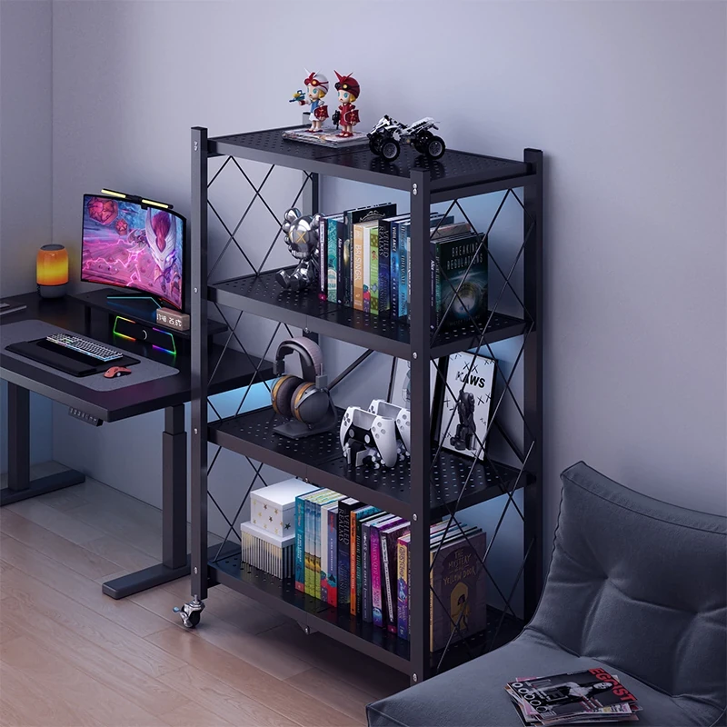 取り付け不要!移動可能な多段収納ラック - ゲーミングルームに最適な折りたたみ式本棚!学生向けのシンプルな展示棚で、使い勝手抜群!