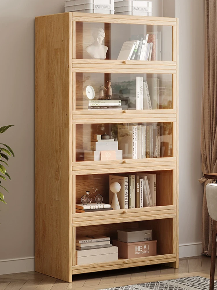 全実木製のフロアシェルフ、子供向けの防塵書棚 - アクリル扉付き収納キャビネットで、お部屋をスッキリ整理!高品質な収納力で、大切な本やおもちゃを美しく保管。おしゃれで機能的なデザインが魅力です!