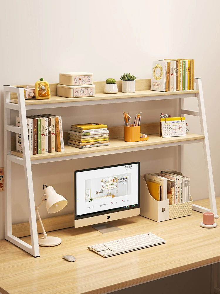 トラペzoidalデスク用収納ラック|学生寮やオフィスに最適な多層型書架|書籍や小物を美しく整理整頓できるデザイン!机上スペースを有効活用し、スッキリとした作業環境を実現!