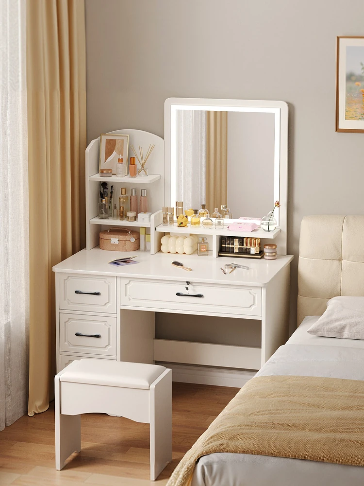 Elegant Multifunctional Makeup Desk and Study Table for Girls - Simple and Stylish Bedroom Vanity with Computer Desk Integration, Perfect for Home Use