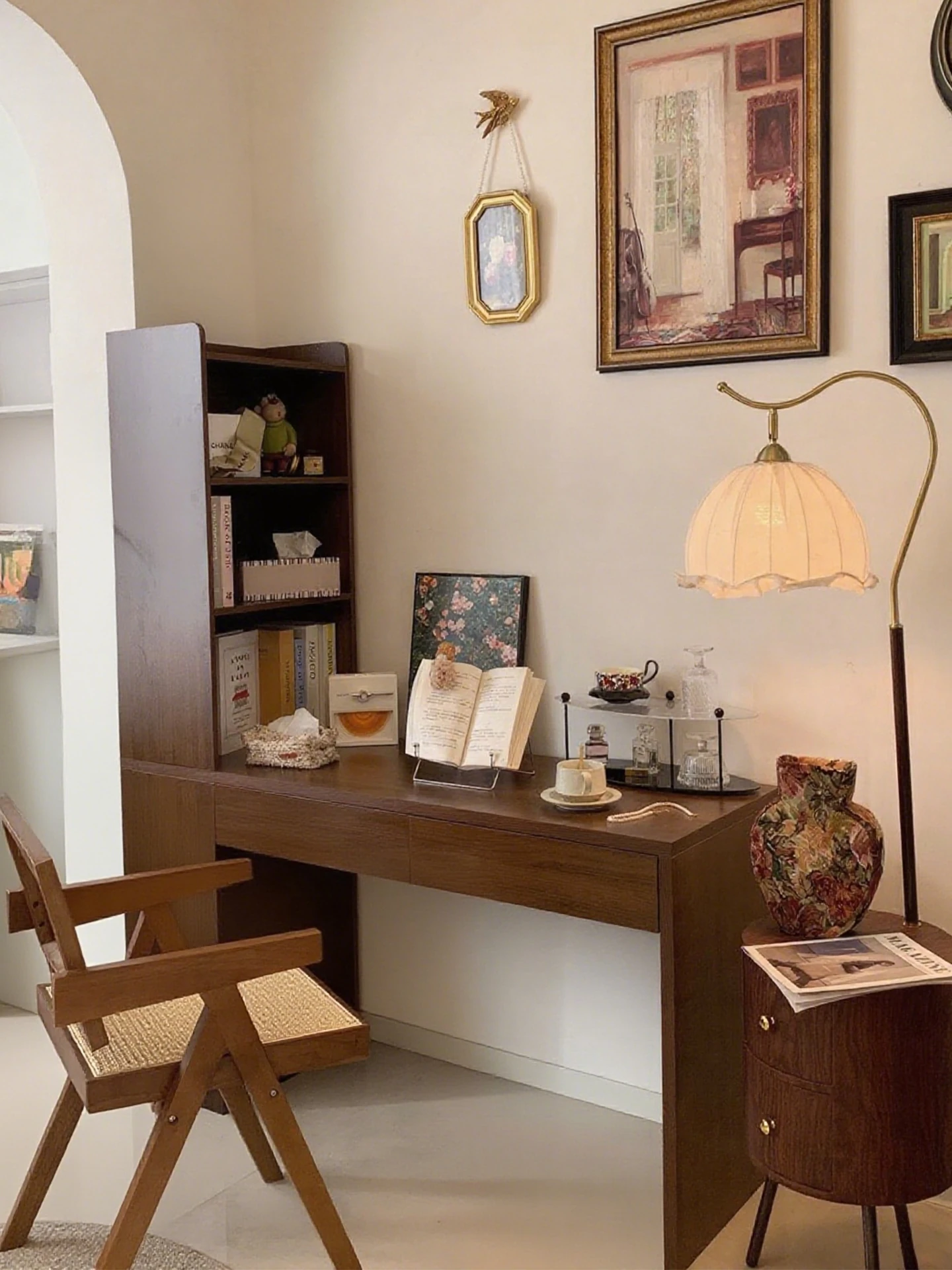 Vintage Solid Wood Corner Desk with Bookshelf - Space-Saving Wall-Mounted Study Table for Bedroom and Home Office