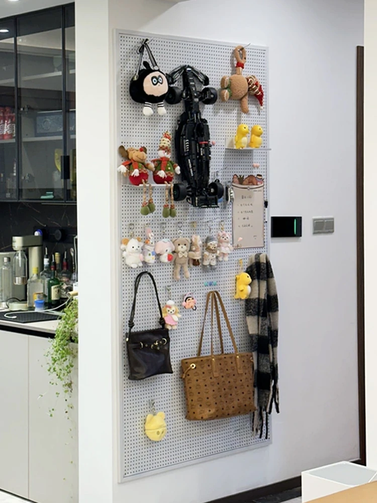 Metal Wall-Mounted Pegboard Storage Rack for Entryway - Versatile Organizer and Display Shelf for Home Décor and Easy Access to Essentials