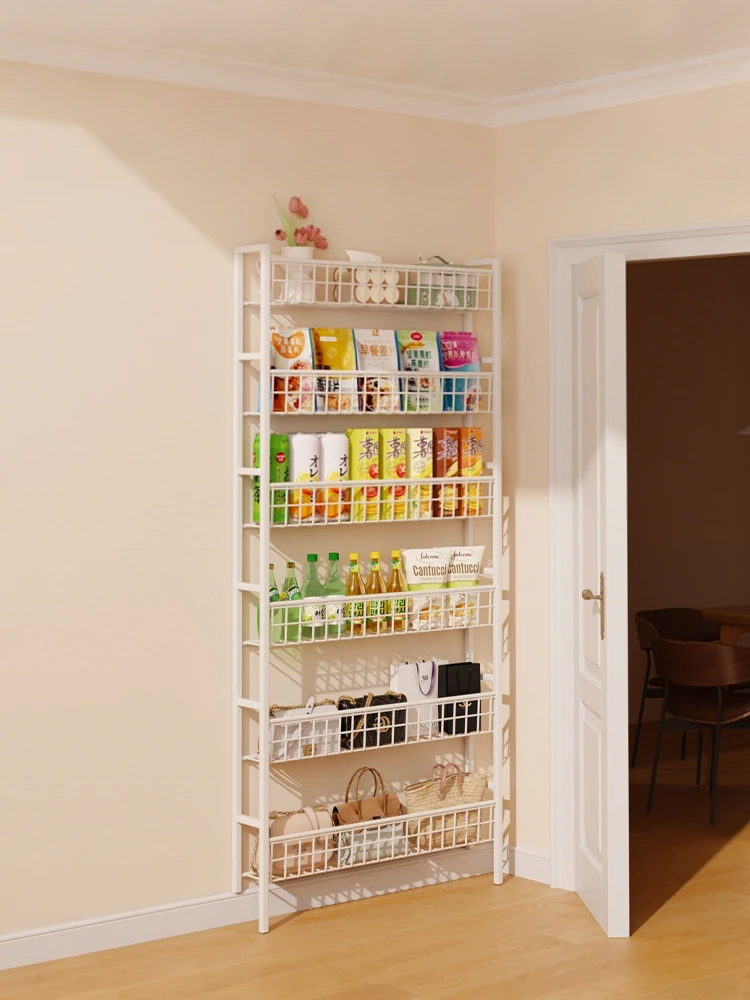 Slim Wall-Mounted Pegboard Storage Rack for Bags and Books - Space-Saving Iron Organizer for Narrow Gaps Behind Doors, Perfect for Home and Office Display