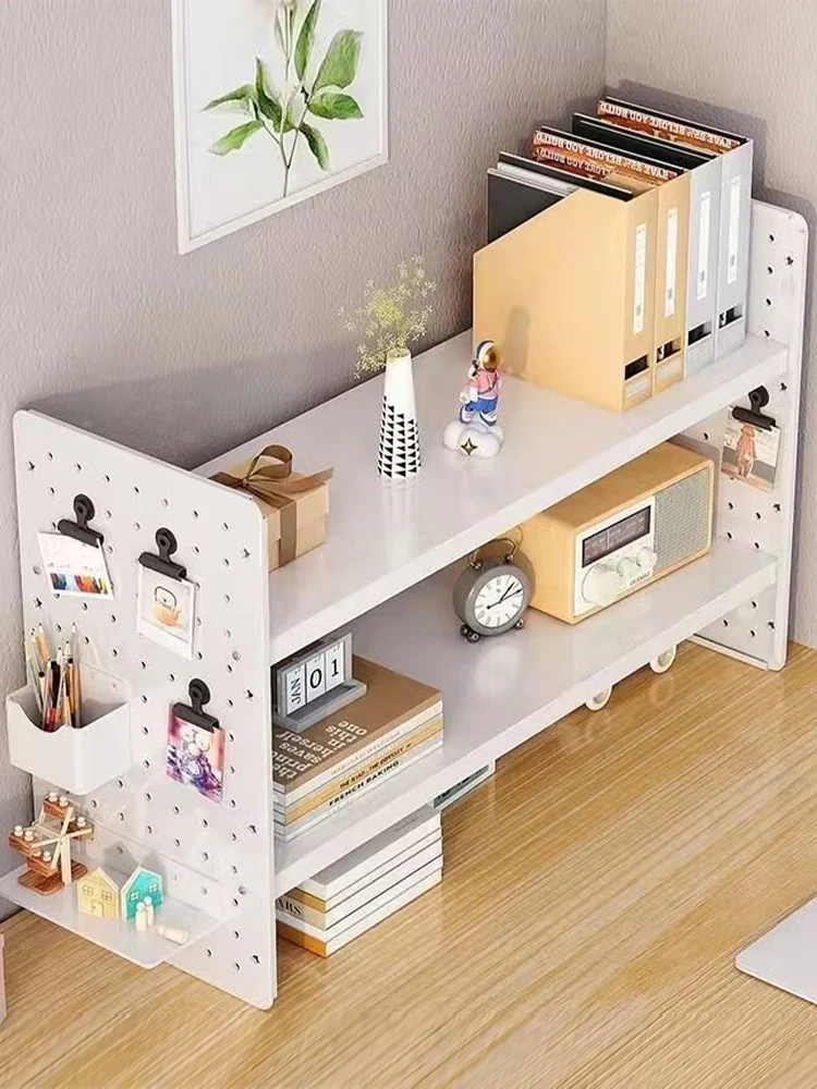 Multi-Layer Desktop Storage Rack - Versatile Bookshelf & Pegboard Organizer for Student Dorms and Home Use - Perfect for Displaying and Storing Items