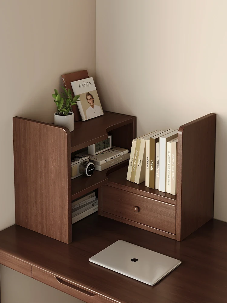 Wooden Desktop Storage Rack - Office Corner Shelf for Wall-Mounted Use, Expandable Bookshelf, Compact Bookcase for Organized Workspaces