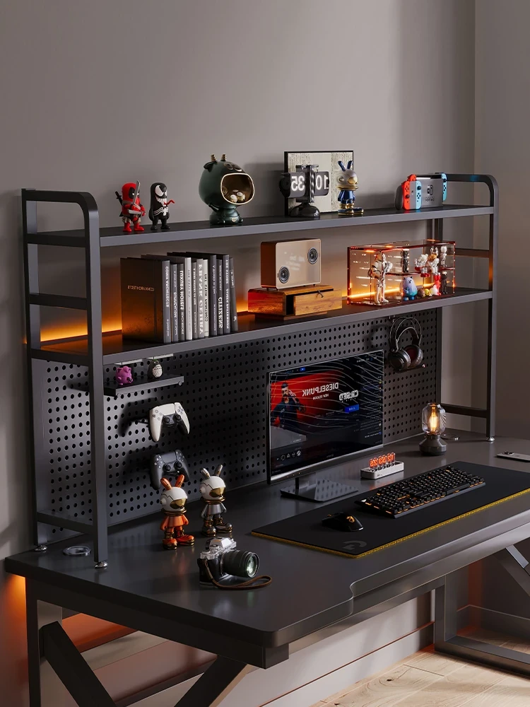 Metal Pegboard Shelf - Stylish Desktop Organizer for Computers and Books, Ideal for Gaming Setup and Home Office Décor, Perfect Storage Solution for Your Desk