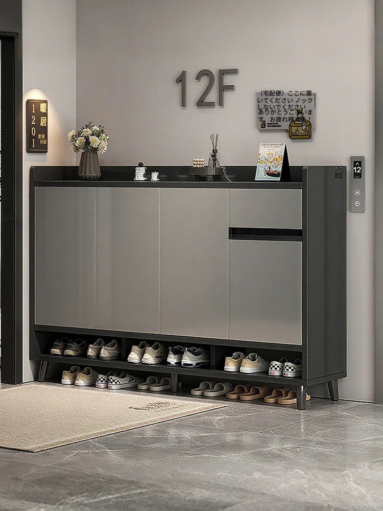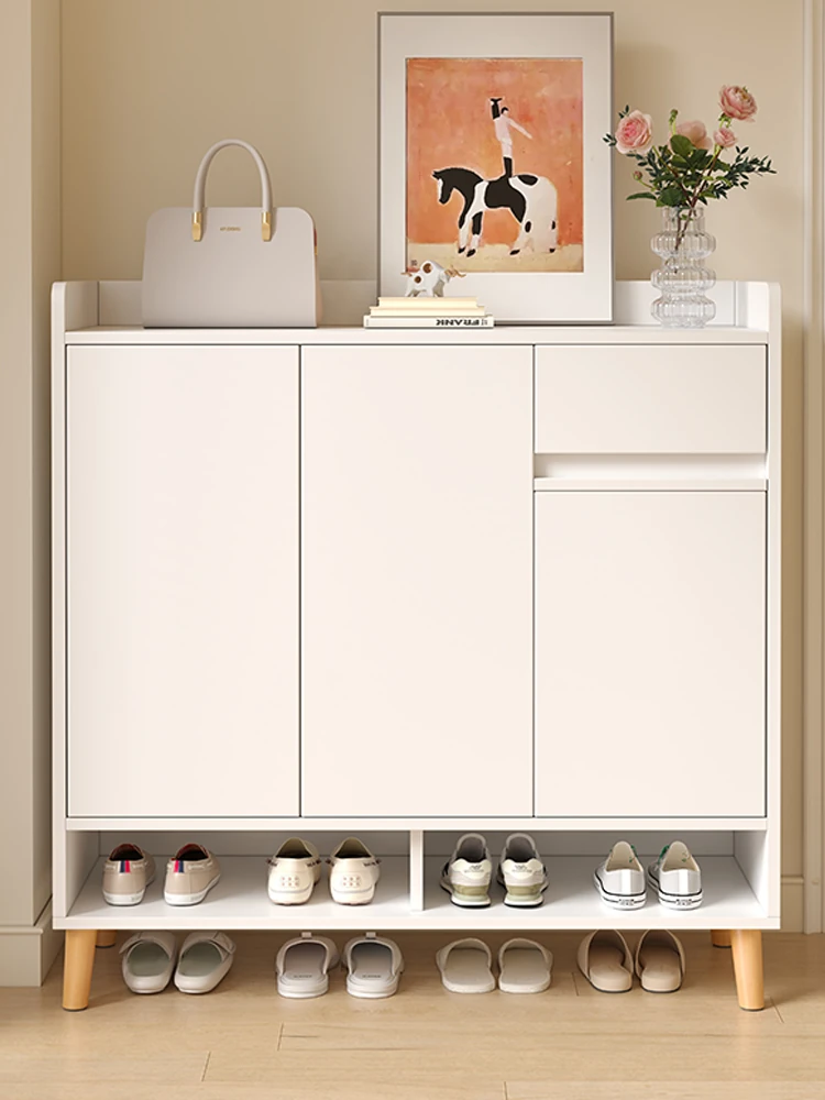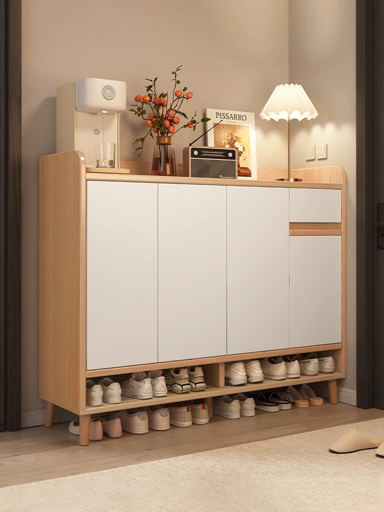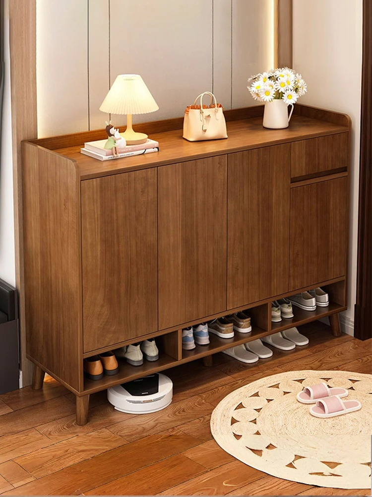 2025年新款!高級感あふれる実木製シューズキャビネット - 家庭用玄関収納、壁に寄せて設置可能!すっきりとしたデザインで靴を整頓し、玄関をおしゃれに演出します。