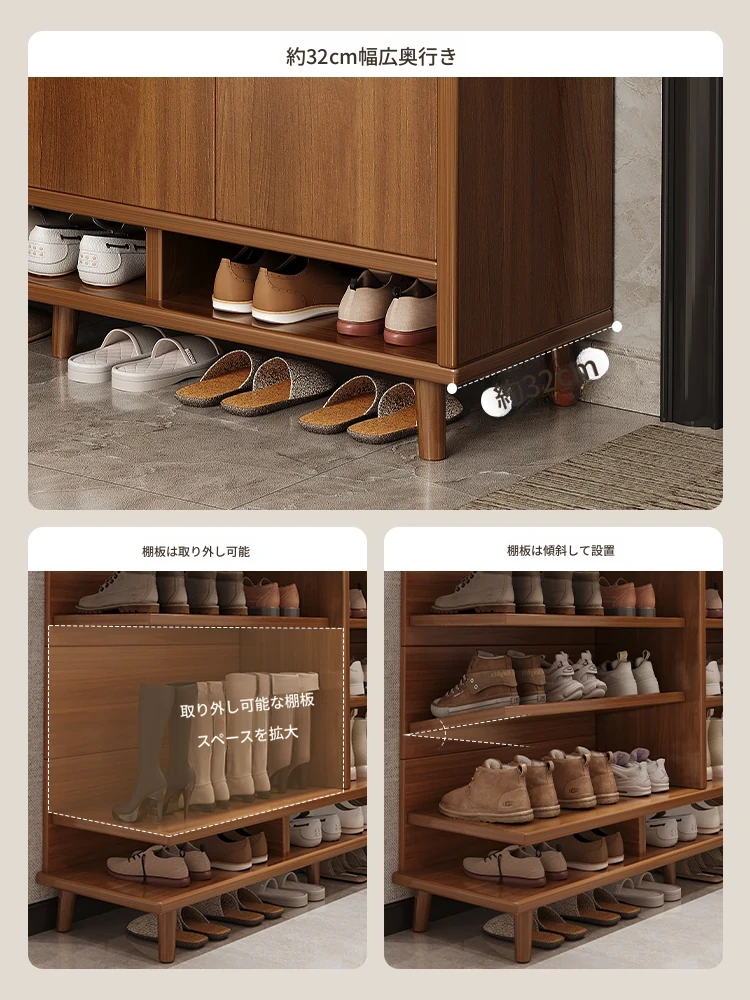 2024年新作!実木製シューズキャビネット|玄関にぴったりの大容量収納|スタイリッシュなデザインで、おしゃれなインテリアに。靴をすっきり整理して、家の入り口を魅力的に演出します!