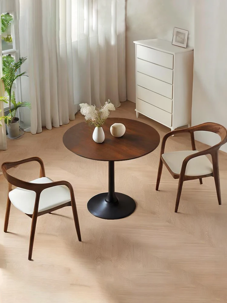 カジュアルな雰囲気のアメリカンスタイル!天然木製の小さな円形テーブルセット - リビング、オフィス、バルコニーに最適なシンプルなデザインの談話テーブルと椅子のコンビネーション。快適なひとときをお楽しみください!