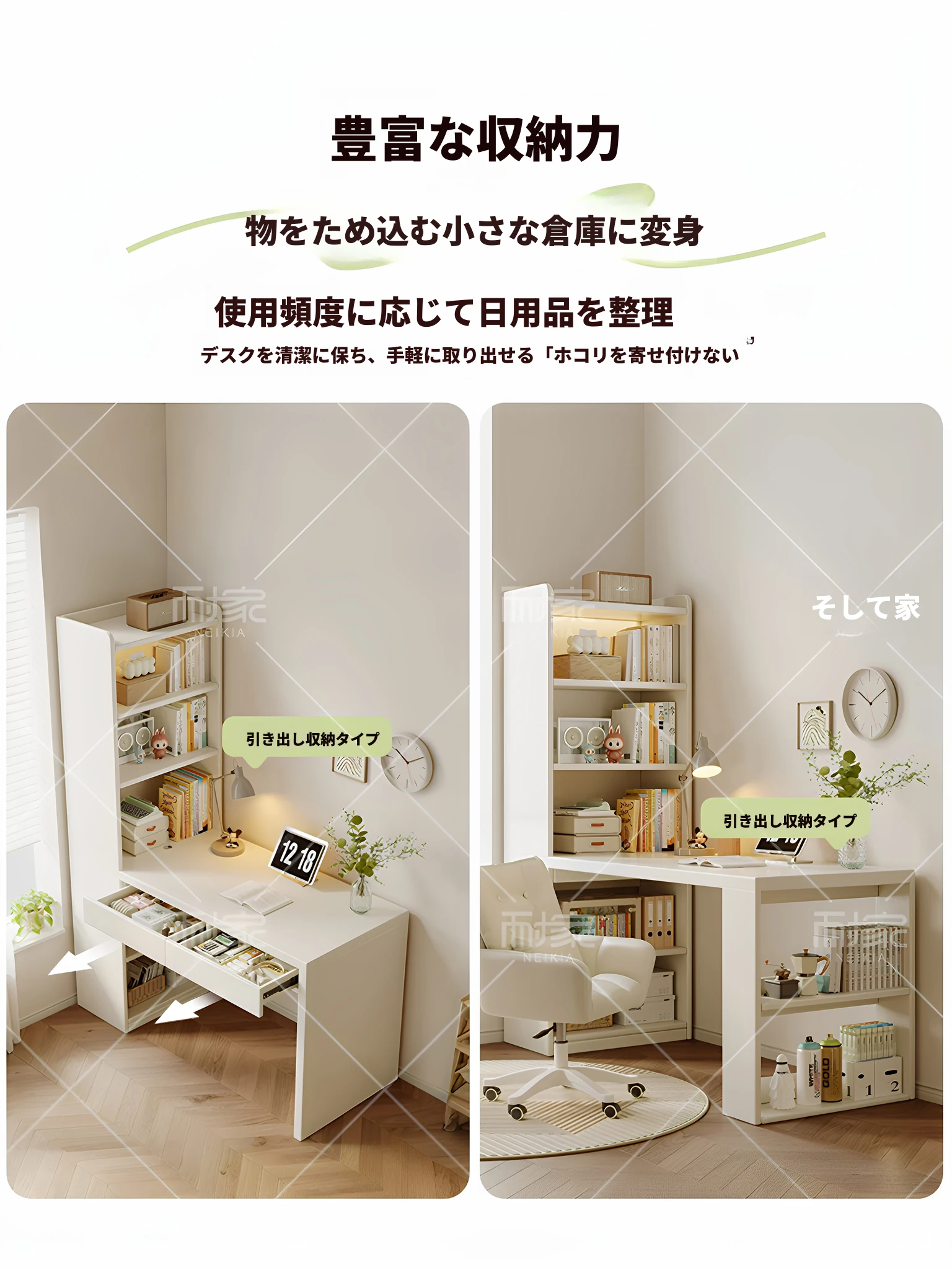 天然木製のコーナーデスク&シェルフ一体型!省スペースでスタイリッシュなデザインの学習・オフィスデスク。リビングや寝室にぴったりの多機能収納付き。あなたの生活空間を格上げするアイテムです!