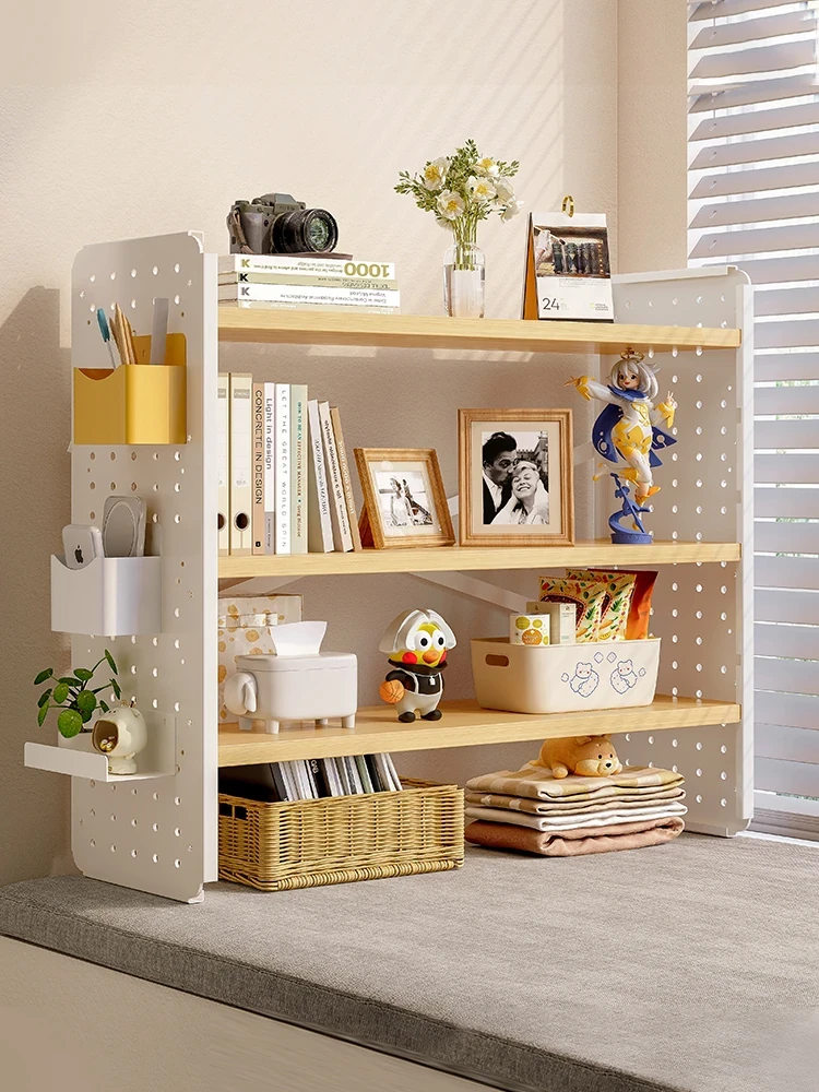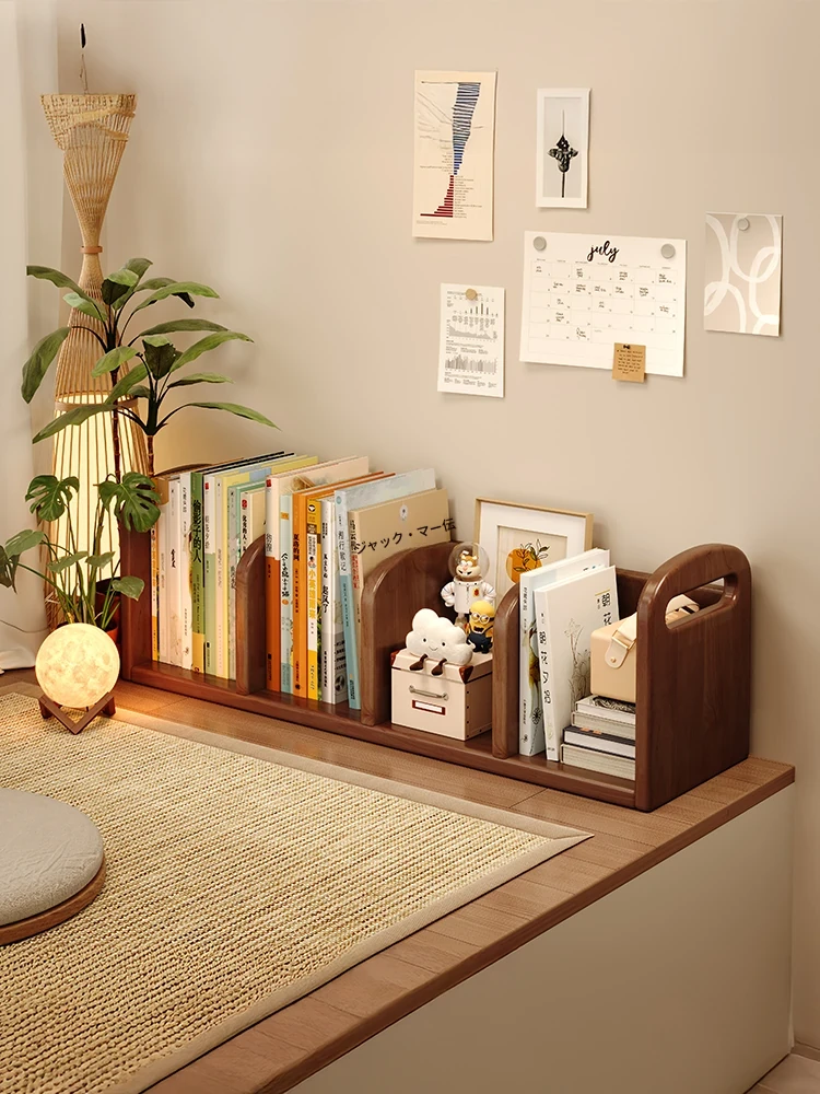 天然木材の窓辺書棚デスク収納ラック - 寝室にぴったりのシンプルな収納キャビネット!使いやすく、おしゃれなデザインで、あなたの本や小物をスッキリ整理。快適な読書スペースを演出します!