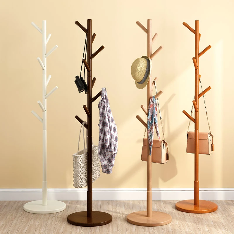 高品質な無垢材ハンガー!シンプルでスタイリッシュなデザイン、寝室やリビングにぴったりの立て掛け式衣類ラック。衣類や帽子を美しくディスプレイして、収納力もアップ!